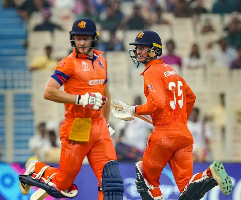 ਕੋਲਕਾਤਾ, 29 ਅਕਤੂਬਰ- ਨੈਦਰਲੈਂਡਸ ਨੇ ਇੱਥੇ ਸਕੌਟ ਐਡਵਰਡਸ ਦੀ ਕਪਤਾਨੀ ਪਾਰੀ (68 ਦੌੜਾਂ) ਅਤੇ ਗੇਂਦਬਾਜ਼ਾਂ ਦੇ ਸ਼ਾਨਦਾਰ ਪ੍ਰਦਰਸ਼ਨ ਸਦਕਾ ਬੰੰਗਲਦੇਸ਼ ਨੂੰ 87 ਦੌੜਾਂ ਨਾਲ ਹਰਾ ਕੇ ਕ੍ਰਿਕਟ ਵਿਸ਼ਵ ਕੱਪ ’ਚ ਦੂਜੀ ਜਿੱਤ ਦਰਜ ਕੀਤੀ। ਜਿੱਤ ਲਈ 230 ਦੌੜਾਂ ਦੇ ਟੀਚੇ ਦਾ ਪਿੱਛਾ ਕਰਦਿਆਂ ਬੰਗਲਦੇਸ਼ ਟੀਮ 42.2 ਓਵਰਾਂ ’ਚ 142 ਦੌੜਾਂ ’ਤੇ ਹੀ ਆਊਟ ਹੋ ਗਈ। ਟੀਮ ਵੱਲੋਂ ਸਭ ਤੋਂ ਵੱਧ 35 ਦੌੜਾਂ ਮੇਹਦੀ ਹਸਨ ਮਿਰਾਜ ਨੇ ਬਣਾਈਆਂ। ਨੈਦਰਲੈਂਡਸ ਵੱਲੋਂ ਪੀ.ਵੀ. ਮੀਕੇਰਨ ਨੇ 3 ਤੇ ਬੀ. ਡੀਲੀਡ ਨੇ 2 ਵਿਕਟਾਂ ਲਈਆਂ। ਨੈਦਰਲੈਂਡਸ ਨੇ ਪਹਿਲਾਂ ਦੱਖਣੀ ਅਫਰੀਕਾ ਨੂੰ ਹਰਾਇਆ ਸੀ। ਇਸ ਜਿੱਤ ਨਾਲ ਡੱਚ ਟੀਮ ਅੰਕ ਸੂਚੀ ’ਚ 7ਵੇਂ ਨੰਬਰ ’ਤੇ ਆ ਗਈ ਹੈ ਜਦਕਿ ਮੌਜੂਦਾ ਚੈਂਪੀਅਨ ਇੰਗਲੈਂਡ ਹੁਣ ਆਖਰੀ ਸਥਾਨ ’ਤੇ ਹੈ।