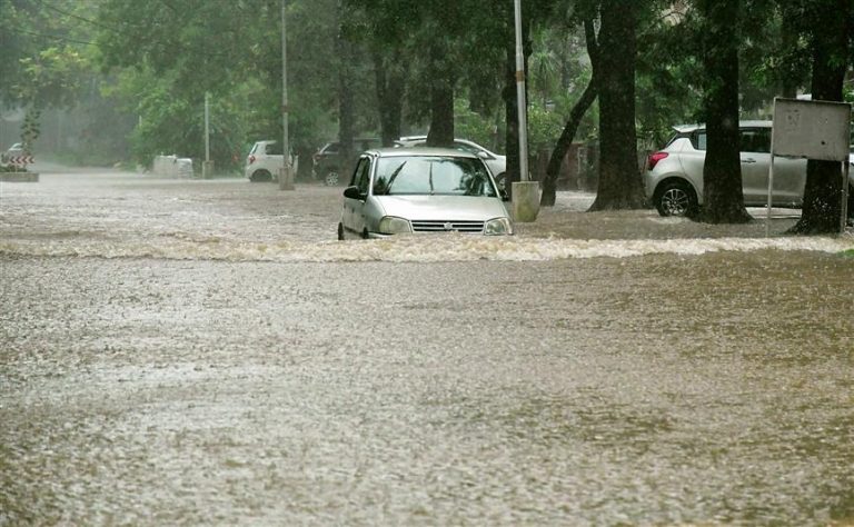 ਚੰਡੀਗੜ੍ਹ, 2 ਜੁਲਾਈ- ਟਰਾਈਸਿਟੀ ਵਿੱਚ ਅੱਜ ਮੌਨਸੂਨ ਨੇ ਦਸਤਕ ਦੇ ਦਿੱਤੀ ਹੈ। ਚੰਡੀਗੜ੍ਹ, ਮੁਹਾਲੀ ਤੇ ਪੰਚਕੂਲਾ ਵਿਚ ਅੱਜ ਸਵੇਰ ਅੱਠ ਵਜੇ ਦੇ ਕਰੀਬ ਭਰਵਾਂ ਮੀਂਹ ਪਿਆ ਜੋ ਹੁਣ ਵੀ ਜਾਰੀ ਹੈ। ਇਸ ਦੌਰਾਨ ਕਈ ਸੜਕਾਂ ਤੇ ਚੌਕਾਂ ਵਿਚ ਪਾਣੀ ਭਰ ਗਿਆ। ਸੈਕਟਰ 18 ਤੋਂ 19 ਨੂੰ ਵੰਡਦੀ ਸੜਕ ’ਤੇ ਪਾਣੀ ਭਰ ਗਿਆ ਜਿਸ ਕਾਰਨ ਦੋ ਪਹੀਆ ਵਾਹਨਾਂ ਨੇ ਦੂਜੇ ਰਸਤੇ ਤੋਂ ਆਪਣੀ ਮੰਜ਼ਿਲ ਵੱਲ ਜਾਣ ਨੂੰ ਤਰਜੀਹ ਦਿੱਤੀ। ਅੱਜ ਦੇ ਮੀਂਹ ਨਾਲ ਲੋਕਾਂ ਨੂੰ ਕਈ ਦਿਨਾਂ ਤੋਂ ਪੈ ਰਹੀ ਗਰਮੀ ਤੋਂ ਰਾਹਤ ਮਿਲੀ ਹੈ। ਇਸ ਮੀਂਹ ਨਾਲ ਪਾਰਾ ਵੀ ਤਿੰਨ ਡਿਗਰੀ ਤਕ ਡਿੱਗ ਗਿਆ ਹੈ। ਚੰਡੀਗੜ੍ਹ ਵਿਚ ਮੌਨਸੂਨ ਦੋ ਦਿਨ ਦੇਰ ਨਾਲ ਪੁੱਜਿਆ ਹੈ। ਮੌਸਮ ਵਿਭਾਗ ਵਲੋਂ ਅਗਲੇ ਤਿੰਨ ਦਿਨ ਮੀਂਹ ਪੈਣ ਦੀ ਪੇਸ਼ੀਨਗੋਈ ਕੀਤੀ ਗਈ ਹੈ।