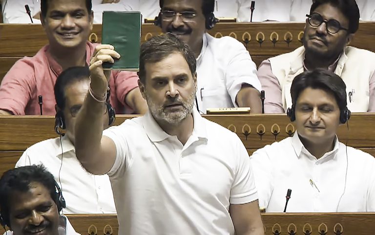 ਨਵੀਂ ਦਿੱਲੀ, 1 ਜੁਲਾਈ- ਲੋਕ ਸਭਾ ਵਿੱਚ ਅੱਜ ਤਿੱਖਾ ਭਾਸ਼ਣ ਦਿੰਦਿਆਂ ਵਿਰੋਧੀ ਧਿਰ ਦੇ ਨੇਤਾ ਰਾਹੁਲ ਗਾਂਧੀ ਨੇ ਕਾਬਜ਼ ਧਿਰ ਭਾਜਪ ’ਤੇ ਹਮਲੇ ਕੀਤੇ। ਉਨ੍ਹਾਂ ਕਿਹਾ ਕਿ ਡਰ, ਨਫ਼ਰਤ ਤੇ ਝੂਠ ਫੈਲਾਉਣਾ ਹਿੰਦੁਤਵ ਨਹੀਂ ਹੈ। ਲੋਕ ਸਭਾ ਵਿੱਚ ਅੱਜ ਉਨ੍ਹਾਂ ਇਹ ਟਿੱਪਣੀ ਰਾਸ਼ਟਰਪਤੀ ਦੇ ਭਾਸ਼ਣ ਸਬੰਧੀ ਧੰਨਵਾਦ ਮਤੇ ’ਤੇ ਚਰਚਾ ਦੌਰਾਨ ਕੀਤੀ। ਇਸੇ ਦੌਰਾਨ ਪ੍ਰਧਾਨ ਮੰਤਰੀ ਨਰਿੰਦਰ ਮੋਦੀ ਨੇ ਰਾਹੁਲ ਗਾਂਧੀ ਦੇ ਭਾਸ਼ਣ ਨੂੰ ਰੋਕਦਿਆਂ ਕਿਹਾ ਕਿ ਸਮੁੱਚੇ ਹਿੰਦੂ ਸਮਾਜ ਨੂੰ ਹਿੰਸਕ ਕਹਿਣਾ ਇਕ ਗੰਭੀਰ ਮੁੱਦਾ ਹੈ। ਇਸ ’ਤੇ ਰਾਹੁਲ ਗਾਂਧੀ ਨੇ ਕਿਹਾ ਕਿ ਭਾਜਪਾ ਤੇ ਆਰਐੱਸਐੱਸ ਸਮੁੱਚਾ ਹਿੰਦੂ ਸਮਾਜ ਨਹੀਂ ਹੈ।’’ ਕਾਂਗਰਸੀ ਆਗੂ ਨੇ ਅੱਗੇ ਇਸਲਾਮ, ਈਸਾਈ ਧਰਮ, ਬੱਧ ਧਰਮ, ਜੈਨ ਧਰਮ ਅਤੇ ਸਿੱਖ ਧਰਮ ਦਾ ਹਵਾਲਾ ਦਿੰਦਿਆਂ ਕਿਹਾ ਕਿ ਸਾਰੇ ਧਰਮ ਬਹਾਦਰੀ ਦੀ ਗੱਲ ਕਰਦੇ ਹਨ। ਉਨ੍ਹਾਂ ਸੰਵਿਧਾਨ ਅਤੇ ਭਾਰ ਦੇ ਬੁਨਿਆਦੀ ਵਿਚਾਰ ’ਤੇ ਸੋਚੀ ਸਮਝੀ ਸਾਜ਼ਿਸ਼ ਤਹਿਤ ਹਮਲੇ ਕਰਨ ਦਾ ਦੋਸ਼ ਲਗਾਇਆ। ਰਾਹੁਲ ਨੇ ਵਿਰੋਧੀ ਧਿਰ ਦਾ ਨੇਤਾ ਚੁਣੇ ਜਾਣ ’ਤੇ ਖੁਸ਼ੀ ਜ਼ਾਹਿਰ ਕੀਤੀ ਅਤੇ ਉਨ੍ਹਾਂ ਕਿਹਾ, ‘‘ਇਹ ਸਾਡੇ ਲਈ ਸੱਤਾ ਵਿੱਚ ਆਉਣ ਤੋਂ ਕਿਤੇ ਵੱਧ ਹੈ।’’