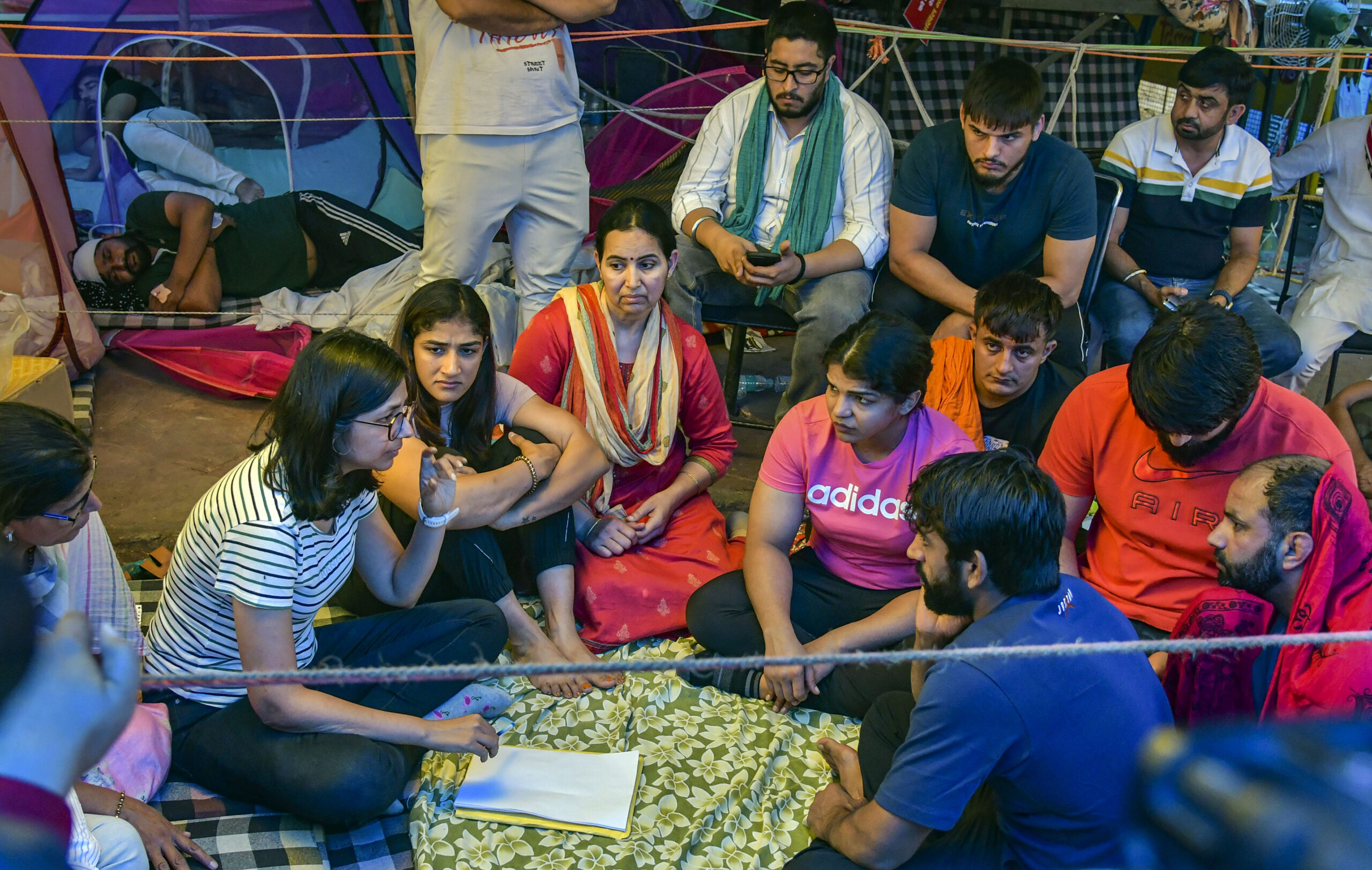 ਨਵੀਂ ਦਿੱਲੀ, 4 ਮਈ- ਦਿੱਲੀ ਮਹਿਲਾ ਕਮਿਸ਼ਨ ਦੀ ਮੁਖੀ ਸਵਾਤੀ ਮਾਲੀਵਾਲ ਅੱਜ ਜੰਤਰ ਮੰਤਰ ਵਿਖੇ ਮਹਿਲਾ ਪਹਿਲਵਾਨਾਂ ਨੂੰ ਮਿਲੀ। ਉਨ੍ਹਾਂ ਟਵੀਟ ਕੀਤਾ, ‘ਮੈਂ ਕੁੜੀਆਂ (ਪਹਿਲਵਾਨਾਂ) ਨੂੰ ਦੁਬਾਰਾ ਮਿਲਣ ਆਈ ਹਾਂ ਕਿਉਂਕਿ ਇਹ ਮੇਰਾ ਫਰਜ਼ ਹੈ। ਪਹਿਲਵਾਨ ਵਿਨੇਸ਼ ਫੋਗਾਟ ਅਤੇ ਸਾਕਸ਼ੀ ਮਲਿਕ ਨੇ ਸਾਨੂੰ ਦੱਸਿਆ ਕਿ ਉਨ੍ਹਾਂ ‘ਤੇ ਤਸ਼ੱਦਦ ਕੀਤਾ ਜਾ ਰਿਹਾ ਸੀ ਅਤੇ ਉੱਥੇ ਪੁਲੀਸ ਅਧਿਕਾਰੀ ਸਨ, ਜੋ ਸ਼ਰਾਬੀ ਸਨ ਅਤੇ ਉਨ੍ਹਾਂ ਨਾਲ ਦੁਰਵਿਵਹਾਰ ਕੀਤਾ ਗਿਆ ਸੀ। ਮੈਂ ਉਨ੍ਹਾਂ ਦੀ ਸੁਰੱਖਿਆ ਲਈ ਚਿੰਤਤ ਹਾਂ। ਦਿੱਲੀ ਪੁਲੀਸ ਬ੍ਰਿਜ ਭੂਸ਼ਨ ਨੂੰ ਕਿਉਂ ਬਚਾ ਰਹੀ ਹੈ? ਦਿੱਲੀ ਪੁਲੀਸ ਉਸ ਨੂੰ ਗ੍ਰਿਫਤਾਰ ਕਿਉਂ ਨਹੀਂ ਕਰ ਰਹੀ?