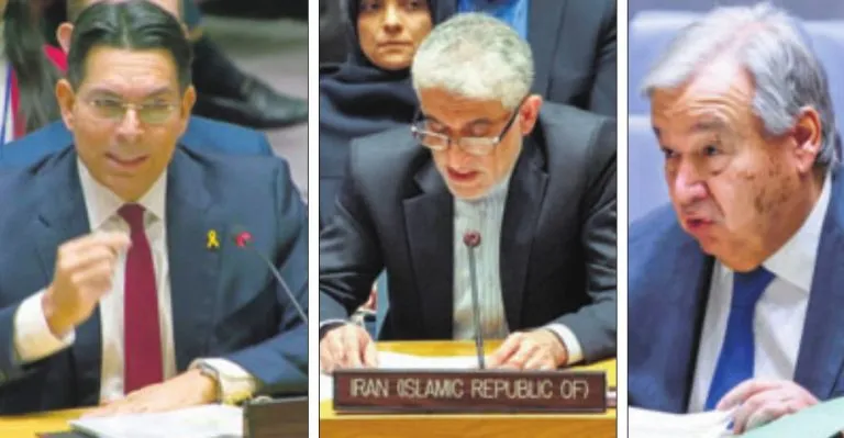 ਸੰਯੁਕਤ ਰਾਸ਼ਟਰ, 4 ਅਕਤੂੁਬਰ- ਪੱਛਮੀ ਏਸ਼ੀਆ ਵਿਚ ਵਧਦੇ ਸੰਘਰਸ਼ ਦਰਮਿਆਨ ਸੰਯੁਕਤ ਰਾਸ਼ਟਰ ਸੁਰੱਖਿਆ ਕੌਂਸਲ ਨੇ ਹੰਗਾਮੀ ਬੈਠਕ ਕੀਤੀ, ਜਿਸ ਦੀ ਪ੍ਰਧਾਨਗੀ ਯੂਐੱਨ ਦੇ ਸਕੱਤਰ ਜਨਰਲ ਅੰਤੋਨੀਓ ਗੁਟੇਰੇਜ਼ ਨੇ ਕੀਤੀ। ਬੈਠਕ ਦੌਰਾਨ ਇਜ਼ਰਾਈਲ ਤੇ ਇਰਾਨ ਦੇ ਰਾਜਦੂਤਾਂ ਨੇ ਆਪੋ ਆਪਣਾ ਪੱਖ ਰੱਖਿਆ। ਯੂਐੱਨ ਵਿਚ ਇਰਾਨ ਦੇ ਰਾਜਦੂਤ ਆਮਿਰ ਸਈਦ ਇਰਾਵਾਨੀ ਨੇ ਕਿਹਾ ਕਿ ਉਨ੍ਹਾਂ ਦੇ ਮੁਲਕ ਨੇ ਮੰਗਲਵਾਰ ਨੂੰ ਇਜ਼ਰਾਈਲ ’ਤੇ ਕਰੀਬ 200 ਮਿਜ਼ਾਈਲਾਂ ਦਾਗ਼ੀਆਂ ਸਨ ਤਾਂ ਕਿ ਇਜ਼ਰਾਈਲ ਦੀ ਹਿੰਸਾ ਨੂੰ ਰੋਕਿਆ ਜਾ ਸਕੇ, ਜਦੋਂਕਿ ਉਨ੍ਹਾਂ ਦੇ ਇਜ਼ਰਾਇਲੀ ਹਮਰੁਤਬਾ ਡੈਨੀ ਡੈਨਨ ਨੇ ਇਸ ਹਮਲੇ ਨੂੰ ‘ਬੇਮਿਸਾਲ ਹਮਲਾਵਰ ਕਾਰਵਾਈ’ ਕਰਾਰ ਦਿੱਤਾ।