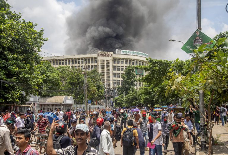 ਢਾਕਾ/ਨਵੀਂ ਦਿੱਲੀ, 5 ਅਗਸਤ- ਸਰਕਾਰੀ ਨੌਕਰੀਆਂ ’ਚ ਵਿਵਾਦਿਤ ਰਾਖਵੇਂਕਰਨ ਖਿਲਾਫ਼ ਦੇਸ਼ ਭਰ ਵਿਚ ਜਾਰੀ ਹਿੰਸਕ ਪ੍ਰਦਰਸ਼ਨਾਂ ਦਰਮਿਆਨ ਬੰਗਲਾਦੇਸ਼ ਦੀ ਪ੍ਰਧਾਨ ਮੰਤਰੀ ਸ਼ੇਖ ਹਸੀਨਾ ਨੇ ਅੱਜ ਅਹੁਦੇ ਤੋਂ ਅਸਤੀਫ਼ਾ ਦੇ ਦਿੱਤਾ। ਫੌਜ ਨੇ ਅੰਤਰਿਮ ਸਰਕਾਰ ਦੀ ਕਮਾਨ ਆਪਣੇ ਹੱਥਾਂ ਵਿਚ ਲੈ ਲਈ ਹੈ। ਥਲ ਸੈਨਾ ਮੁਖੀ ਵਕਾਰ-ਉਜ਼-ਜ਼ਮਾਨ ਨੇ ਫੌਜ ਤੇ ਪੁਲੀਸ ਨੂੰ ਪ੍ਰਦਰਸ਼ਨਕਾਰੀਆਂ ’ਤੇ ਗੋਲੀ ਨਾ ਚਲਾਉਣ ਦੇ ਹੁਕਮ ਦਿੱਤੇ ਹਨ। ਉਧਰ ਹਸੀਨਾ ਦੇਸ਼ ਛੱਡ ਕੇ ਨਵੀਂ ਦਿੱਲੀ ਪਹੁੰਚ ਗਈ ਹੈ। ਉਨ੍ਹਾਂ ਦਾ ਜਹਾਜ਼ ਭਾਰਤੀ ਹਵਾਈ ਸੈਨਾ ਦੇ ਹਿੰਡਨ ਏਅਰ ਬੇਸ ਉੱਤੇ ਉਤਰਿਆ। ਬੰਗਲਾਦੇਸ਼ ਵਿਚ ਪ੍ਰਦਰਸ਼ਨਾਂ ਦੇ ਲੰਘੇ ਦਿਨ ਹਿੰਸਕ ਰੂਪ ਧਾਰਨ ਮਗਰੋਂ ਪਿਛਲੇ ਦੋ ਦਿਨਾਂ ਵਿਚ 100 ਤੋਂ ਵੱਧ ਲੋਕਾਂ ਦੀ ਜਾਨ ਜਾਂਦੀ ਰਹੀ ਹੈ। ਮ੍ਰਿਤਕਾਂ ਵਿਚ ਪੁਲੀਸ ਮੁਲਾਜ਼ਮ ਅਤੇ ਸੱਤਾਧਾਰੀ ਅਵਾਮੀ ਲੀਗ ਦੇ ਆਗੂ ਤੇ ਕਾਰਕੁਨ ਵੀ ਸ਼ਾਮਲ ਹਨ। ਉਧਰ, ਦਿੱਲੀ ਪੁਲੀਸ ਨੇ ਇਥੇ ਬੰਗਲਾਦੇਸ਼ ਹਾਈ ਕਮਿਸ਼ਨ ਦੀ ਸੁਰੱਖਿਆ ਵਧਾ ਦਿੱਤੀ ਹੈ। ਸੀਮਾ ਸੁਰੱਖਿਆ ਬਲ (ਬੀਐੱਸਐੱਫ) ਨੇ ਬੰਗਲਾਦੇਸ਼ ਵਿਚ ਨਿੱਤ ਬਦਲਦੇ ਘਟਨਾਕ੍ਰਮ ਦਰਮਿਆਨ ਗੁਆਂਢੀ ਮੁਲਕ ਨਾਲ ਲੱਗਦੀ 4096 ਕਿਲੋਮੀਟਰ ਲੰਮੀ ਸਰਹੱਦ ਦੇ ਨਾਲ ਆਪਣੇ ਸਾਰੇ ਅਹਿਮ ਟਿਕਾਣਿਆਂ ਲਈ ‘ਹਾਈ ਅਲਰਟ’ ਜਾਰੀ ਕੀਤਾ ਹੈ।