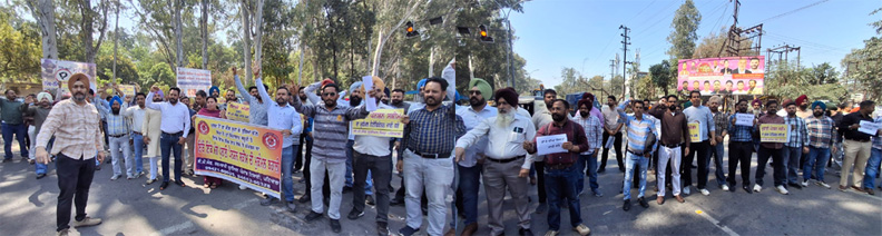 ਇਸ ਮੌਕੇ ਜ਼ਿਲ੍ਹਾ ਪ੍ਰਧਾਨ ਗੁਰਮੇਲ ਵਿਰਕ ਪੰਜਾਬ ਸਰਕਾਰ ਖਿਲਾਫ ਨਾਅਰੇਬਾਜ਼ੀ ਕਰਦਿਆਂ ਕਿਹਾ ਕਿ ਮੁਲਾਜ਼ਮ ਸਾਥੀਆਂ ਦੀਆਂ ਅਹਿਮ ਮੰਗਾਂ ਲਈ ਅੱਜ ਜ਼ਿਲ੍ਹੇ ਦੇ ਸਮੂਹ ਮੁਲਾਜ਼ਮਾਂ ਵਲੋਂ ਡੀ. ਸੀ. ਦਫਤਰ ਅੱਗੇ ਪ੍ਰਦਰਸ਼ਨ ਕੀਤਾ ਜਾ ਰਿਹਾ ਹੈ। ਉਨ੍ਹਾਂ ਕਿਹਾ ਕਿ ਪੰਜਾਬ ਸਰਕਾਰ ਪੁਰਾਣੀ ਪੈਨਸ਼ਨ ਸਕੀਮ ਲਾਗੂ ਕਰਕੇ ਤੁਰੰਤ ਜੀ ਪੀ ਐਫ ਖਾਤੇ ਖੋਲ੍ਹੇ ਜਾਣ। ਇਸ ਤੋਂ ਬਿਨ੍ਹਾਂ ਬਕਾਇਆ 16 ਫੀਸਦੀ ਡੀ. ਏ. ਜਾਰੀ ਕਰਨ ਦੀ ਮੰਗ ਅਤੇ ਪੰਜਾਬ ਸਰਕਾਰ ਵਲੋਂ ਨਵੀਂ ਭਰਤੀ ਮੁਲਾਜ਼ਮਾਂ ’ਤੇ ਸੈਂਟਰ ਦਾ ਪੇ-ਸਕੇਲ ਥੋਪਿਆ ਹੋਇਆ ਹੈ, ਜਿਸ ਕਾਰਨ ਨਵੇਂ ਕਲਰਕਾਂ ਨੂੰ ਪੁਰਾਣਿਆਂ ਦੇ ਮੁਕਾਬਲੇ ਬਹੁਤ ਹੀ ਘੱਟ ਤਨਖਾਹ ਮਿਲ ਰਹੀ ਹੈ। ਉਨ੍ਹਾਂ ਮੰਗ ਕੀਤੀ ਕਿ ਨਵੇਂ ਭਰਤੀ ਮੁਲਾਜ਼ਮਾਂ ਨੂੰ ਪੰਜਾਬ ਪੇ-ਕਮਿਸ਼ਨ ਦੇ ਅਧੀਨ ਕੀਤਾ ਜਾਵੇ। ਚੌਥੀ ਮੰਗ ਪਰਖਕਾਲ ਸਮੇਂ ਦੌਰਾਨ ਪੂਰੀ ਤਨਖਾਹ ਦੇਣੀ। ਇਹ ਸਾਡੀਆਂ ਅਹਿਮ ਮੰਗਾਂ ਹਨ, ਜਿਸ ਲਈ ਮੁਲਾਜ਼ਮਾਂ ਦਾ ਸੰਘਰਸ਼ ਜਾਰੀ ਰਹੇਗਾ। ਉਨ੍ਹਾਂ ਕਿਹਾ ਕਿ ਜਦੋਂ ਤੱਕ ਸਾਡੀਆਂ ਇਹ ਮੰਗਾਂ ਪੂਰੀਆਂ ਨਹੀਂ ਹੋ ਜਾਂਦੀਆਂ ਉਦੋਂ ਤੱਕ ਅਸੀਂ ਸਰਕਾਰ ਖਿਲਾਫ ਇਸੇ ਤਰ੍ਹਾਂ ਰੋਸ-ਪ੍ਰਦਰਸ਼ਨ, ਅਰਥੀ ਫੂਕ ਮੁਹਾਜ਼ਰੇ ਤੇ ਰੋਸ ਰੈਲੀਆਂ ਜਾਰੀ ਰੱਖਾਂਗੇ। ਮੁਲਾਜ਼ਮ ਜਥੇਬੰਦੀ ਵੱਲੋਂ ਆਉਣ ਵਾਲੇ ਦਿਨਾਂ ਵਿੱਚ ਮੁਲਾਜ਼ਮ ਹਿੱਤ ਵਿੱਚ ਤਕੜਾ ਸੰਘਰਸ਼ ਉਲੀਕਿਆ ਜਾਵੇਗਾ। ਇਸ ਮੌਕੇ ਜ਼ਿਲ੍ਹਾ ਚੇਅਰਮੈਨ ਰਵਿੰਦਰ ਸ਼ਰਮਾ ਵਲੋਂ ਸਮੂਹ ਮੁਲਾਜ਼ਮ ਸਾਥੀਆਂ ਦਾ ਧੰਨਵਾਦ ਕੀਤਾ।