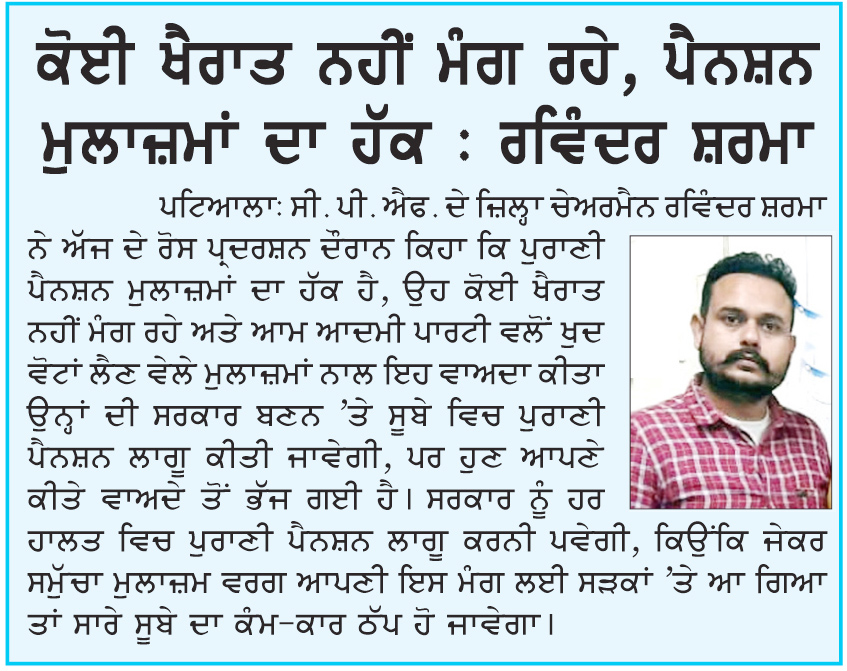 - ਪੈਨਸ਼ਨ ਦੀ ਬਹਾਲੀ ਲਈ ਵਿੱਢਾਂਗੇ ਵੱਡਾ ਸੰਘਰਸ਼: ਵਿਰਕ
