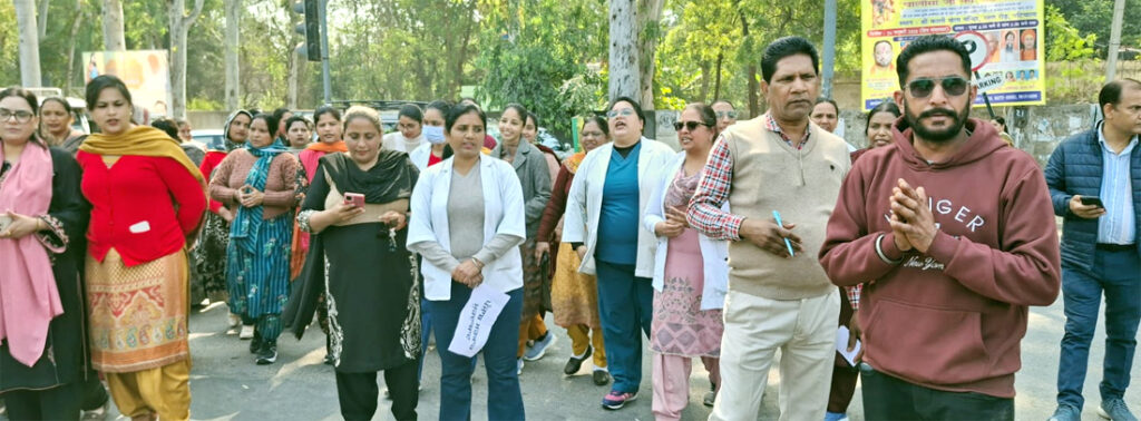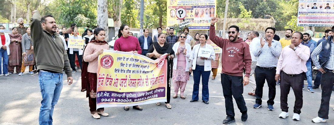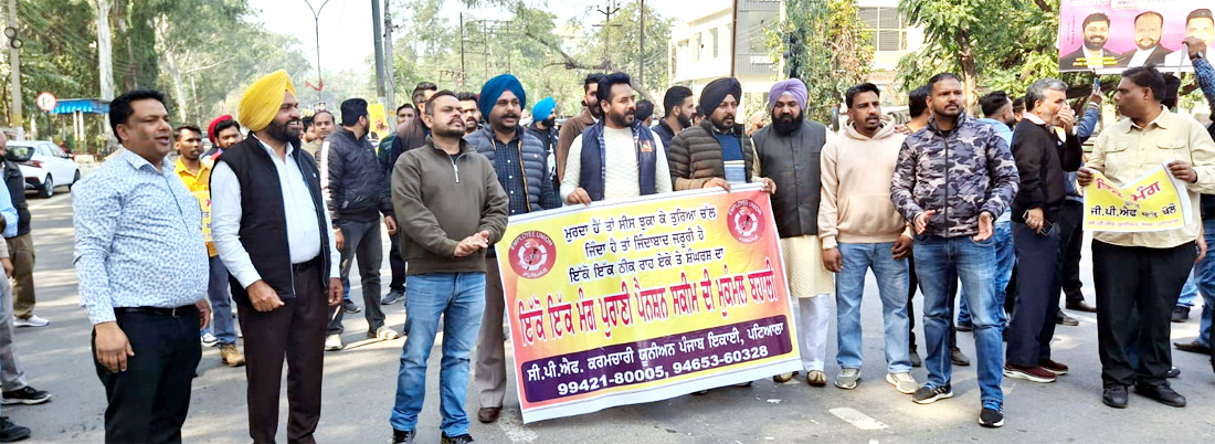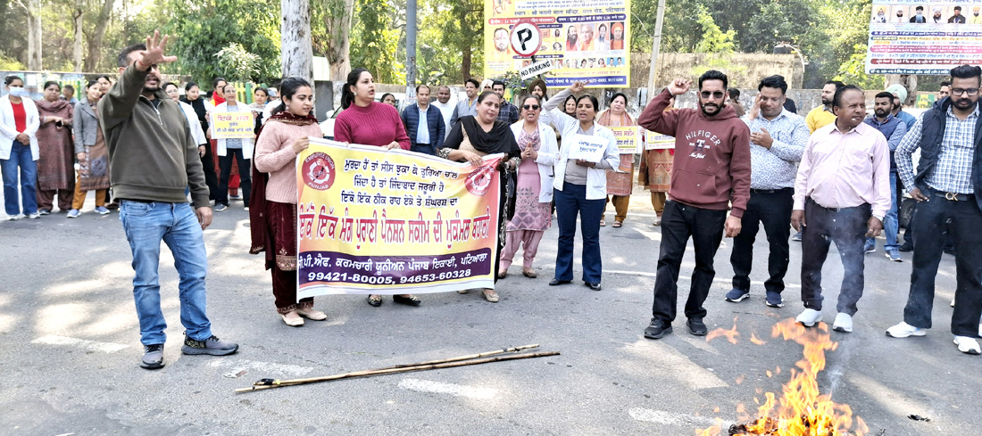 ਪਟਿਆਲਾ 19 ਫਰਵਰੀ (ਗੁਰਪ੍ਰੀਤ ਕੰਬੋਜ ਸੂਲਰ) ਸੀ ਪੀ ਐਫ ਕਰਮਚਾਰੀ ਯੂਨੀਅਨ ਅਤੇ ਪੁਰਾਣੀ ਪੈਨਸ਼ਨ ਪ੍ਰਾਪਤੀ ਫਰੰਟ ਵੱਲੋਂ ਅੱਜ ਪੁਰਾਣੀ ਪੈਨਸ਼ਨ ਦੀ ਬਹਾਲੀ ਲਈ ਸੂਬੇ ਭਰ ਵਿਚ ਪੰਜਾਬ ਸਰਕਾਰ ਦੇ ਪੁੱਤਲੇ ਫੁੱਕੇ ਗਏ। ਇਸੇ ਤਰ੍ਹਾਂ ਹੀ ਪਟਿਆਲਾ ਵਿਖੇ ਵੀ ਜ਼ਿਲ੍ਹਾ ਪ੍ਰਧਾਨ ਗੁਰਮੇਲ ਵਿਰਕ ਦੀ ਅਗਵਾਈ ਹੇਠ ਡੀ ਸੀ ਦਫਤਰ ਅੱਗੇ ਰੋਸ ਪ੍ਰਦਰਸ਼ਨ ਤੇ ਅਰਥੀ ਫੂਕ ਮੁਜ਼ਾਹਰਾ ਕੀਤਾ ਗਿਆ। ਇਸ ਵਿਚ ਵੱਖ-ਵੱਖ ਵਿਭਾਗਾਂ ਦੇ ਹਜ਼ਾਰਾਂ ਕਰਮਚਾਰੀਆਂ ਨੇ ਹਿੱਸਾ ਲਿਆ। ਮਹਿਲਾ ਪ੍ਰਧਾਨ ਸੰਦੀਪ ਕੌਰ ਬਰਨਾਲਾ ਦੀ ਅਗਵਾਈ ’ਚ ਸਟਾਫ ਨਰਸਾਂ, ਪ੍ਰਧਾਨ ਦਰਸ਼ਨ ਸਿੰਘ ਦੀ ਅਗਵਾਈ ’ਚ ਡੀ. ਸੀ. ਦਫਤਰ ਯੂਨੀਅਨ ਨੇ ਵੱਡੀ ਗਿਣਤੀ ਵਿਚ ਹਾਜ਼ਰੀ ਲਵਾਈ।