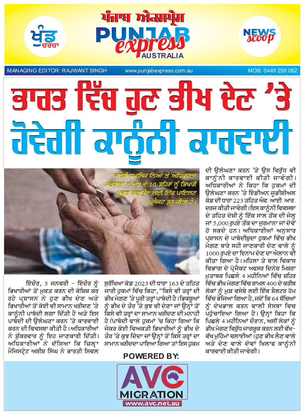 ਇੰਦੌਰ/ਮੱਧ ਪ੍ਰਦੇਸ਼, 4 ਜਨਵਰੀ – ਇੰਦੌਰ ਨੂੰ ਭਿਖਾਰੀਆਂ ਤੋਂ ਮੁਕਤ ਕਰਨ ਦੀ ਕੋਸ਼ਿਸ਼ ਕਰ ਰਹੇ ਪ੍ਰਸ਼ਾਸਨ ਨੇ ਹੁਣ ਭੀਖ ਦੇਣ ਅਤੇ ਭਿਖਾਰੀਆਂ ਤੋਂ ਕੋਈ ਵੀ ਸਾਮਾਨ ਖਰੀਦਣ ‘ਤੇ ਕਾਨੂੰਨੀ ਪਾਬੰਦੀ ਲਗਾ ਦਿੱਤੀ ਹੈ ਅਤੇ ਇਸ ਪਾਬੰਦੀ ਦੀ ਉਲੰਘਣਾ ਕਰਨ ‘ਤੇ ਕਾਰਵਾਈ ਕਰਨ ਦੀ ਵਿਵਸਥਾ ਕੀਤੀ ਹੈ। ਅਧਿਕਾਰੀਆਂ ਨੇ ਸ਼ੁੱਕਰਵਾਰ ਨੂੰ ਇਹ ਜਾਣਕਾਰੀ ਦਿੱਤੀ। ਅਧਿਕਾਰੀਆਂ ਨੇ ਦੱਸਿਆ ਕਿ ਜ਼ਿਲ੍ਹਾ ਮੈਜਿਸਟ੍ਰੇਟ ਅਸ਼ੀਸ਼ ਸਿੰਘ ਨੇ ਭਾਰਤੀ ਸਿਵਲ ਸੁਰੱਖਿਆ ਕੋਡ 2023 ਦੀ ਧਾਰਾ 163 ਦੇ ਤਹਿਤ ਜਾਰੀ ਹੁਕਮਾਂ ਵਿੱਚ ਕਿਹਾ, “ਕਿਸੇ ਵੀ ਤਰ੍ਹਾਂ ਦੀ ਭੀਖ ਮੰਗਣ ‘ਤੇ ਪੂਰੀ ਤਰ੍ਹਾਂ ਪਾਬੰਦੀ ਹੈ। ਭਿਕਸ਼ੂਆਂ ਨੂੰ ਭੀਖ ਦੇ ਤੌਰ ‘ਤੇ ਕੁਝ ਵੀ ਦੇਣਾ ਜਾਂ ਉਨ੍ਹਾਂ ਤੋਂ ਕਿਸੇ ਵੀ ਤਰ੍ਹਾਂ ਦਾ ਸਾਮਾਨ ਖਰੀਦਣ ਦੀ ਮਨਾਹੀ ਹੈ।’ਪਾਬੰਦੀ ਵਾਲੇ ਹੁਕਮਾਂ ‘ਚ ਕਿਹਾ ਗਿਆ ਕਿ ਜੇਕਰ ਕੋਈ ਵਿਅਕਤੀ ਭਿਖਾਰੀਆਂ ਨੂੰ ਭੀਖ ਦੇ ਤੌਰ ‘ਤੇ ਕੁਝ ਦਿੰਦਾ ਜਾਂ ਉਨ੍ਹਾਂ ਤੋਂ ਕਿਸੇ ਤਰ੍ਹਾਂ ਦਾ ਸਾਮਾਨ ਖਰੀਦਦਾ ਪਾਇਆ ਗਿਆ ਤਾਂ ਇਸ ਹੁਕਮ ਦੀ ਉਲੰਘਣਾ ਕਰਨ ‘ਤੇ ਉਸ ਵਿਰੁੱਧ ਵੀ ਕਾਨੂੰਨੀ ਕਾਰਵਾਈ ਕੀਤੀ ਜਾਵੇਗੀ। ਅਧਿਕਾਰੀਆਂ ਨੇ ਕਿਹਾ ਕਿ ਹੁਕਮਾਂ ਦੀ ਉਲੰਘਣਾ ਕਰਨ ‘ਤੇ ਇੰਡੀਅਨ ਜੂਡੀਸ਼ੀਅਲ ਕੋਡ ਦੀ ਧਾਰਾ 223 ਤਹਿਤ ਐੱਫ.ਆਈ.ਆਰ. ਦਰਜ ਕੀਤੀ ਜਾਵੇਗੀ। ਇਸ ਕਾਨੂੰਨੀ ਵਿਵਸਥਾ ਦੇ ਤਹਿਤ ਦੋਸ਼ੀ ਨੂੰ ਇੱਕ ਸਾਲ ਤੱਕ ਦੀ ਜੇਲ੍ਹ ਜਾਂ 5,000 ਰੁਪਏ ਤੱਕ ਦਾ ਜੁਰਮਾਨਾ ਜਾਂ ਦੋਵੇਂ ਹੋ ਸਕਦੇ ਹਨ। ਅਧਿਕਾਰੀਆਂ ਅਨੁਸਾਰ ਪ੍ਰਸ਼ਾਸਨ ਦੇ ਪਾਬੰਦੀਸ਼ੁਦਾ ਹੁਕਮਾਂ ਵਿੱਚ ਭੀਖ ਮੰਗਣ ਬਾਰੇ ਸਹੀ ਜਾਣਕਾਰੀ ਦੇਣ ਵਾਲੇ ਨੂੰ 1000 ਰੁਪਏ ਦਾ ਇਨਾਮ ਦੇਣ ਦਾ ਐਲਾਨ ਵੀ ਕੀਤਾ ਗਿਆ ਹੈ। ਮਹਿਲਾ ਅਤੇ ਬਾਲ ਵਿਕਾਸ ਵਿਭਾਗ ਦੇ ਪ੍ਰੋਜੈਕਟ ਅਫਸਰ ਦਿਨੇਸ਼ ਮਿਸ਼ਰਾ ਮੁਤਾਬਕ ਪਿਛਲੇ 4 ਮਹੀਨਿਆਂ ਵਿੱਚ ਸ਼ਹਿਰ ਵਿੱਚ ਭੀਖ ਮੰਗਣ ਵਿੱਚ ਸ਼ਾਮਲ 400 ਦੇ ਕਰੀਬ ਲੋਕਾਂ ਨੂੰ ਮੁੜ ਵਸੇਬੇ ਲਈ ਇੱਕ ਸ਼ੈਲਟਰ ਹੋਮ ਵਿੱਚ ਭੇਜਿਆ ਗਿਆ ਹੈ, ਜਦੋਂ ਕਿ 64 ਬੱਚਿਆਂ ਨੂੰ ਦੇਖਭਾਲ ਕਰਨ ਵਾਲੀ ਸੰਸਥਾ ਵਿਚ ਪਹੁੰਚਾਇਆ ਗਿਆ ਹੈ। ਉਨ੍ਹਾਂ ਕਿਹਾ ਕਿ ਪਿਛਲੇ 4 ਮਹੀਨਿਆਂ ਦੌਰਾਨ, ਅਸੀਂ ਲੋਕਾਂ ਨੂੰ ਭੀਖ ਮੰਗਣ ਵਿਰੁੱਧ ਜਾਗਰੂਕ ਕਰਨ ਲਈ ਵੱਖ-ਵੱਖ ਮੁਹਿੰਮਾਂ ਚਲਾਈਆਂ। ਹੁਣ ਭੀਖ ਲੈਣ ਵਾਲੇ ਅਤੇ ਦੇਣ ਵਾਲੇ ਦੋਵਾਂ ਖਿਲਾਫ ਕਾਨੂੰਨੀ ਕਾਰਵਾਈ ਕੀਤੀ ਜਾਵੇਗੀ। ਕੇਂਦਰੀ ਸਮਾਜਿਕ ਨਿਆਂ ਅਤੇ ਅਧਿਕਾਰਤਾ ਮੰਤਰਾਲਾ ਨੇ ਦੇਸ਼ ਦੇ 10 ਸ਼ਹਿਰਾਂ ਨੂੰ ਭਿਖਾਰੀ ਮੁਕਤ ਬਣਾਉਣ ਲਈ ਇੱਕ ਪਾਇਲਟ ਪ੍ਰੋਜੈਕਟ ਸ਼ੁਰੂ ਕੀਤਾ ਹੈ, ਜਿਸ ਵਿੱਚ ਇੰਦੌਰ ਵੀ ਸ਼ਾਮਲ ਹੈ।